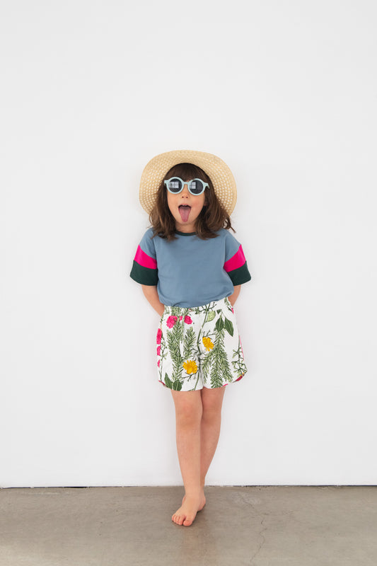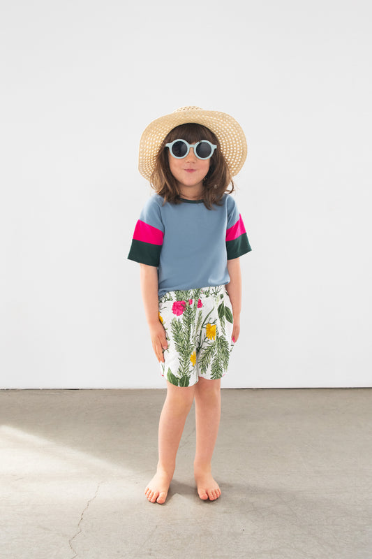 Nous sommes fières de vous présenter cette toute nouvelle collection évolutive unisexes pour enfants, produite à partir des retailles de nos tissus. En plus de réduire les déchets et le gaspillage, les shorts et les t-shirts ont été conçus sans égard pour le genre; ils conviennent autant aux filles qu’aux garçons. Les tissus naturels ont été choisis pour leur confort et leur durabilité. Ainsi, vos enfants pourront grandir et s’amuser avec ces morceaux !