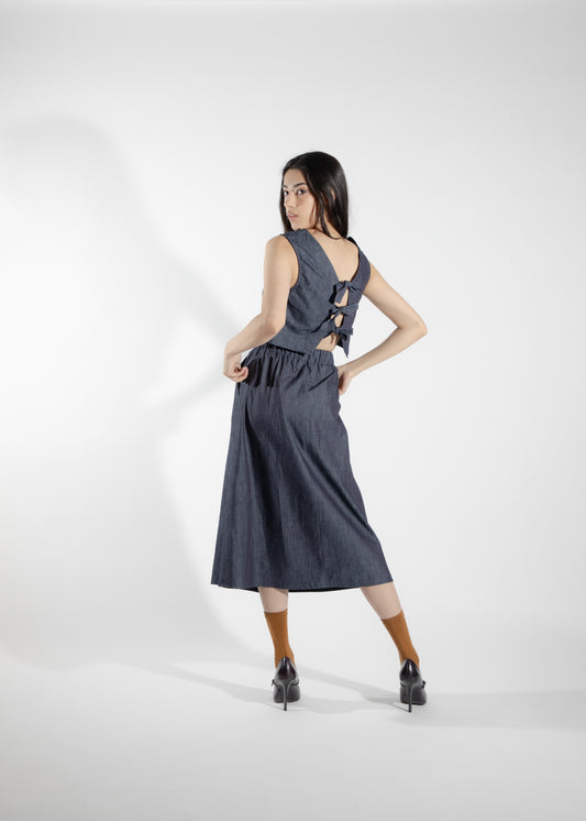 Jupe en porte-feuille denim Nymphéa