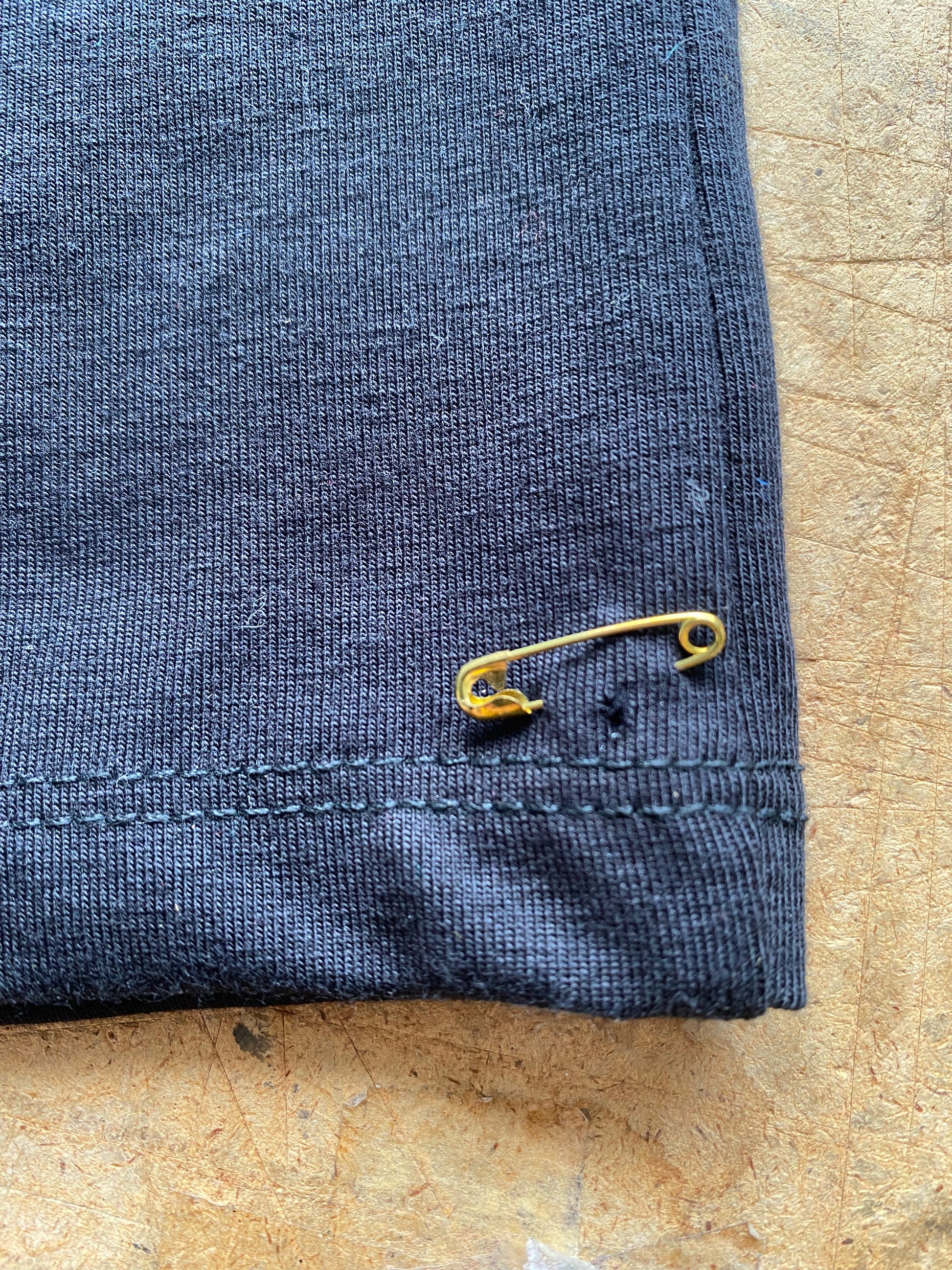 Il y a un petit trou dans le bas du pantalon, proche de la couture.