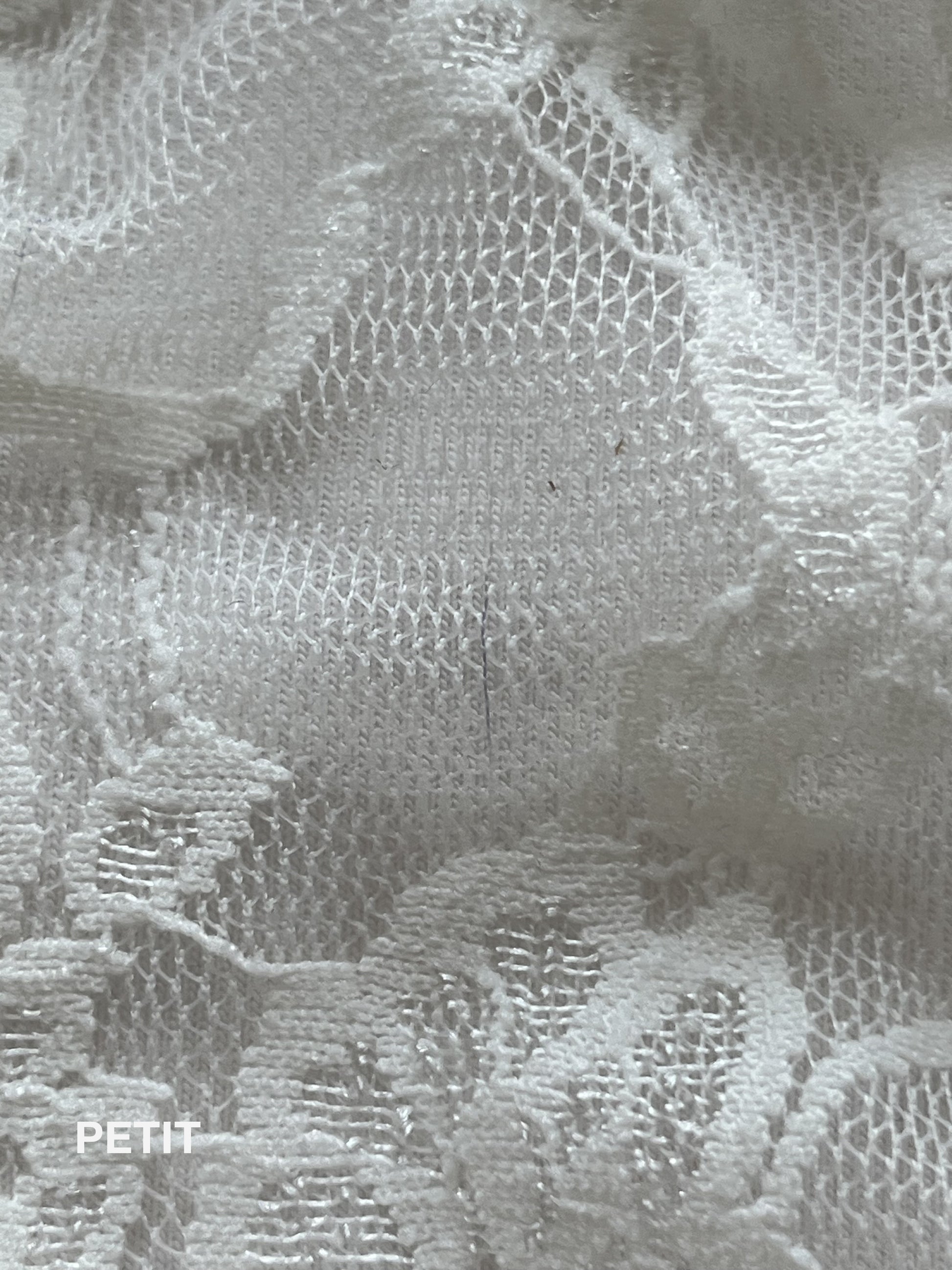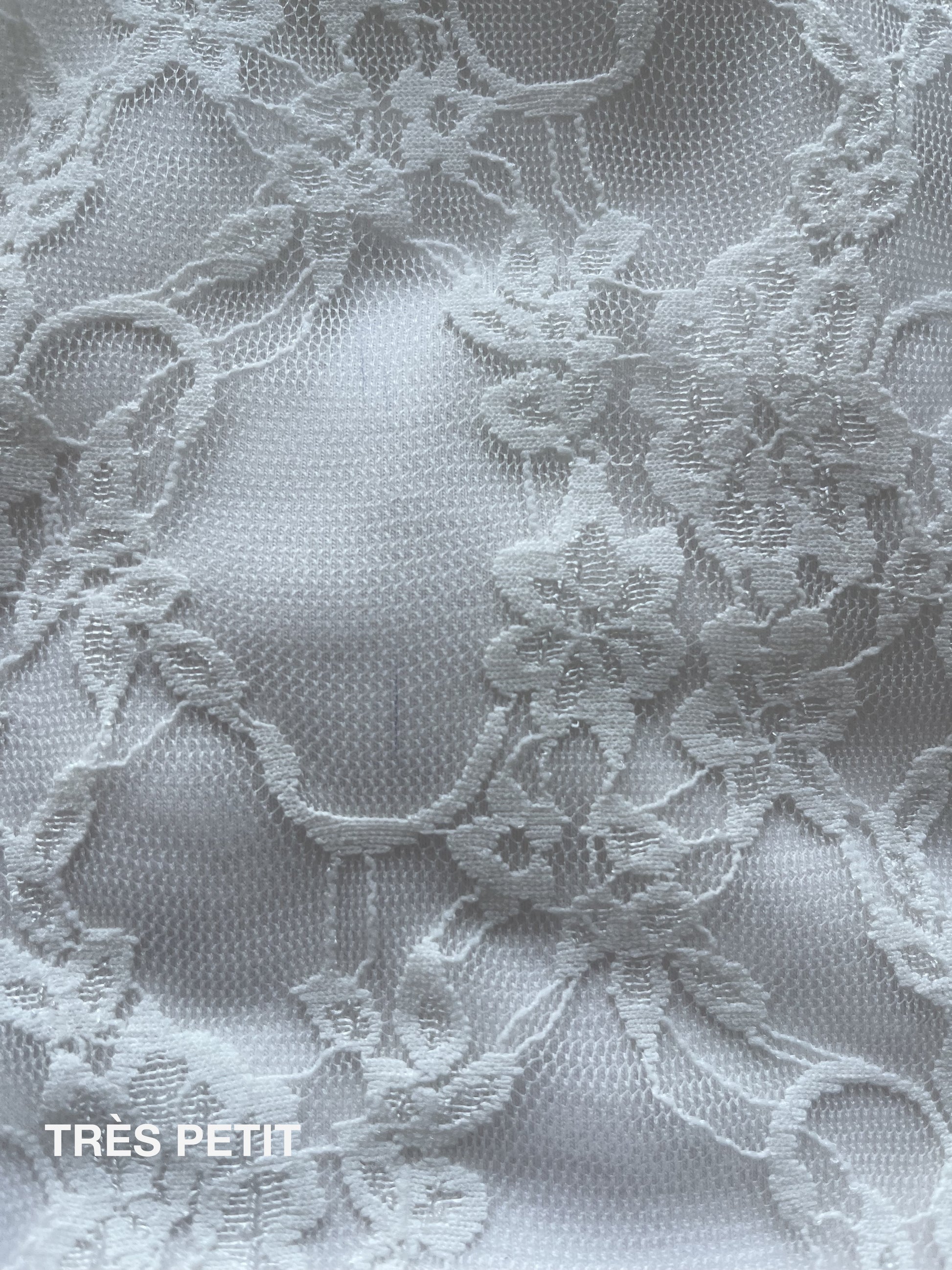 - Dentelle ivoire ou noire : 90% nylon 10% elasthanne