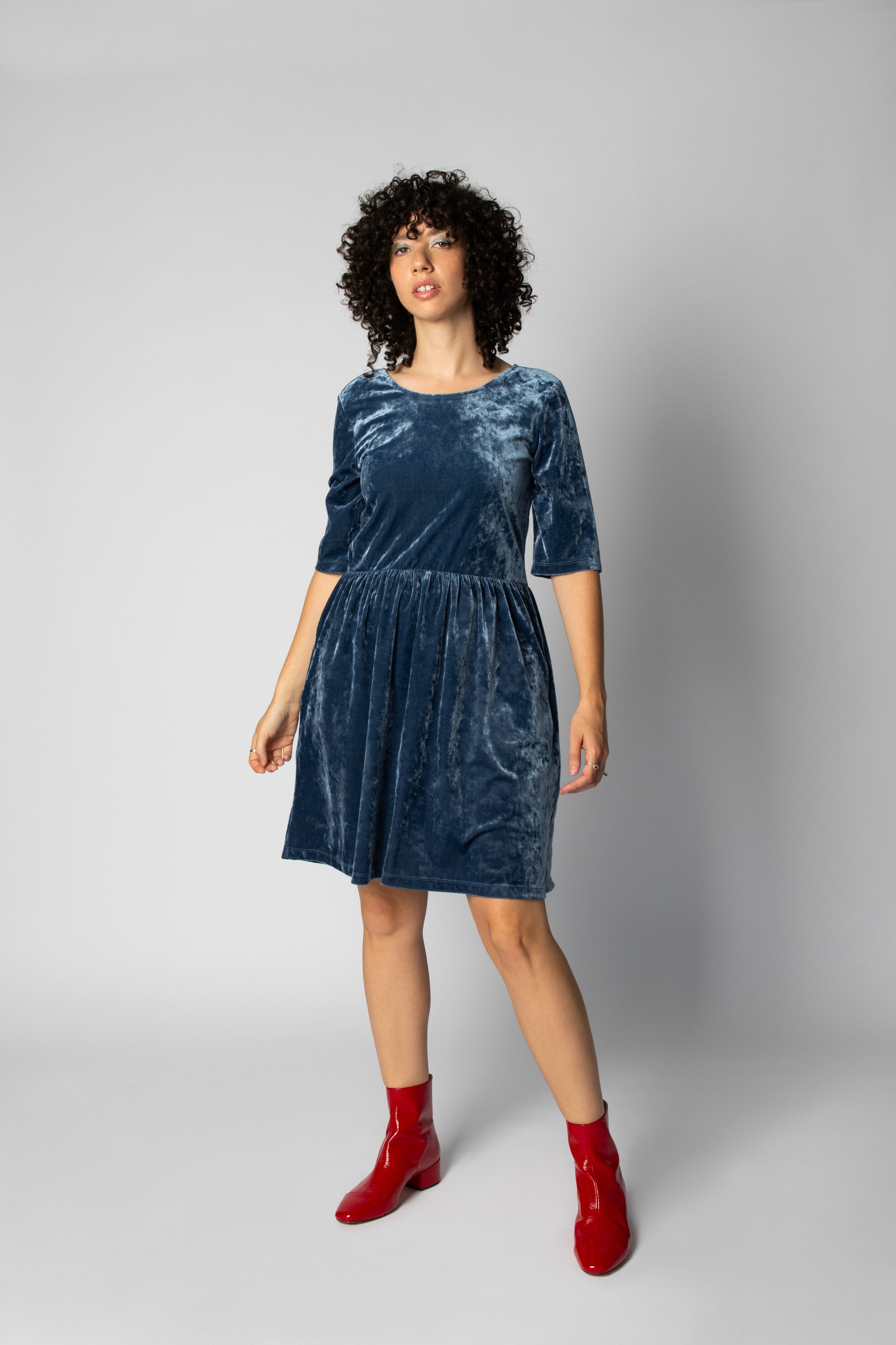 Elle est disponible en velours bleu ou bourgogne, tissu paillettes, coton noir ou royal.
