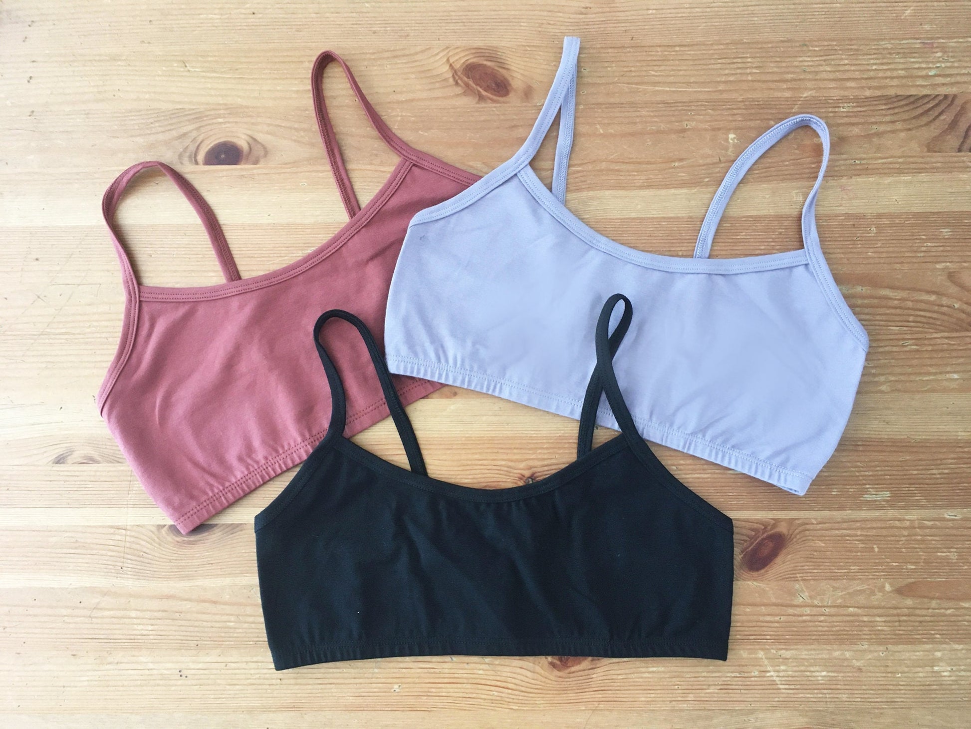 Nous avons créé ce modèle de bralette légère et délicate pour l'été! Elle convient aux petites et moyennes poitrines. Elle est faite de coton biologique et est disponible en 7 magnifiques coloris, soit noir, sienna, lilas, rose, marron, aqua, bourgogne, blanc crème, papaya et océan.