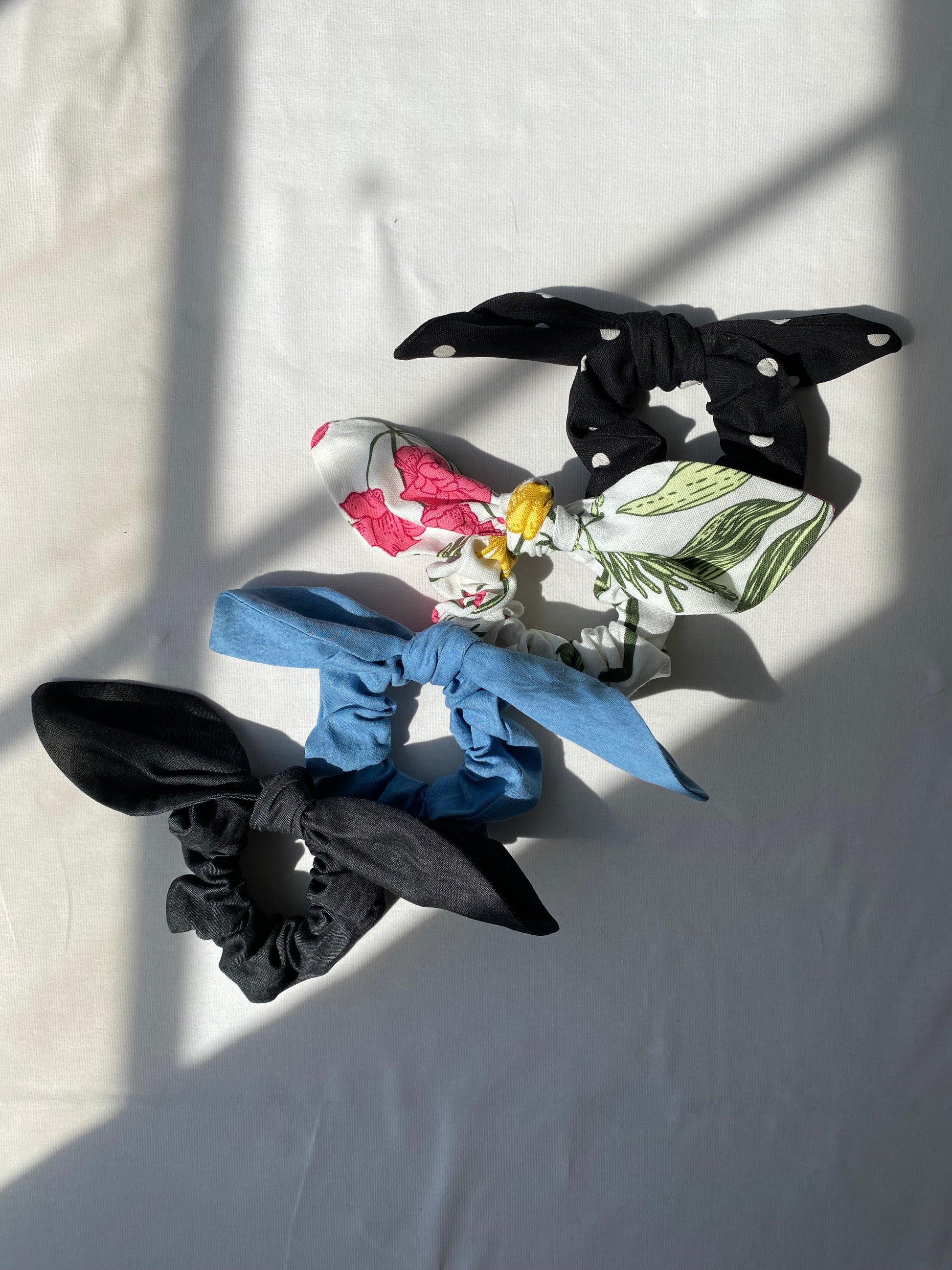 Pour ce printemps, nous avons donné une deuxième vie aux tissus de la collection Dialogue, afin de vous offrir une jolie variété de chouchous pour embellir vos cheveux.
