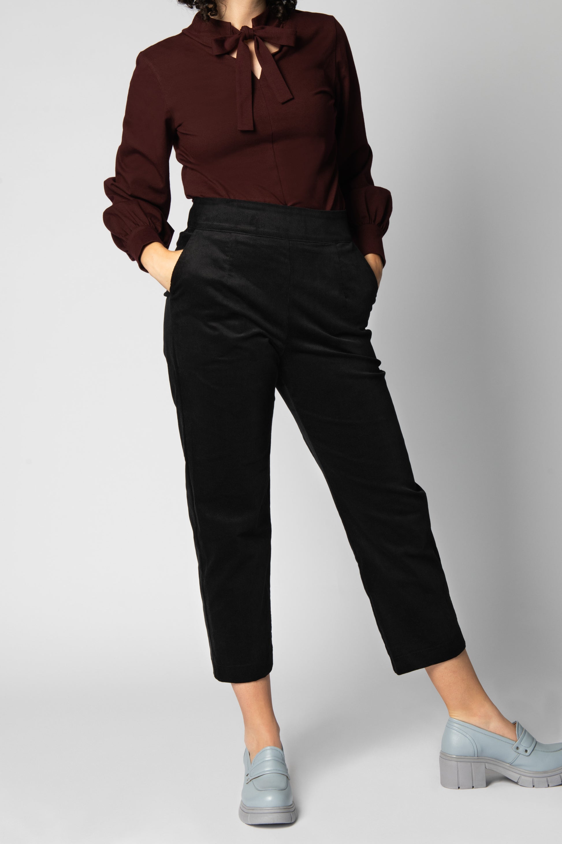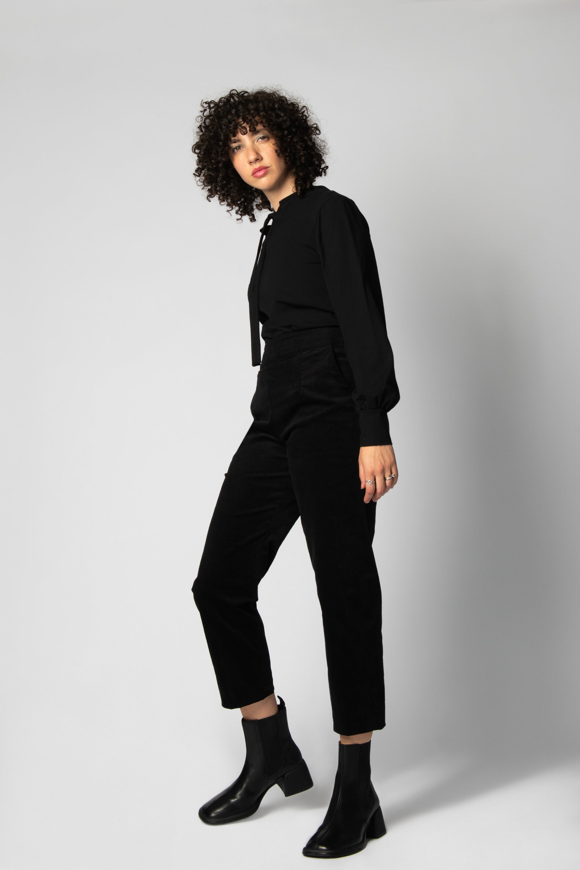 Pantalon taille haute avec fermoir dissimulé à l’arrière et poches en biais. Il possède une belle coupe droite avec la jambe légèrement fuselée, parfait pour le travail ou vos soirées.