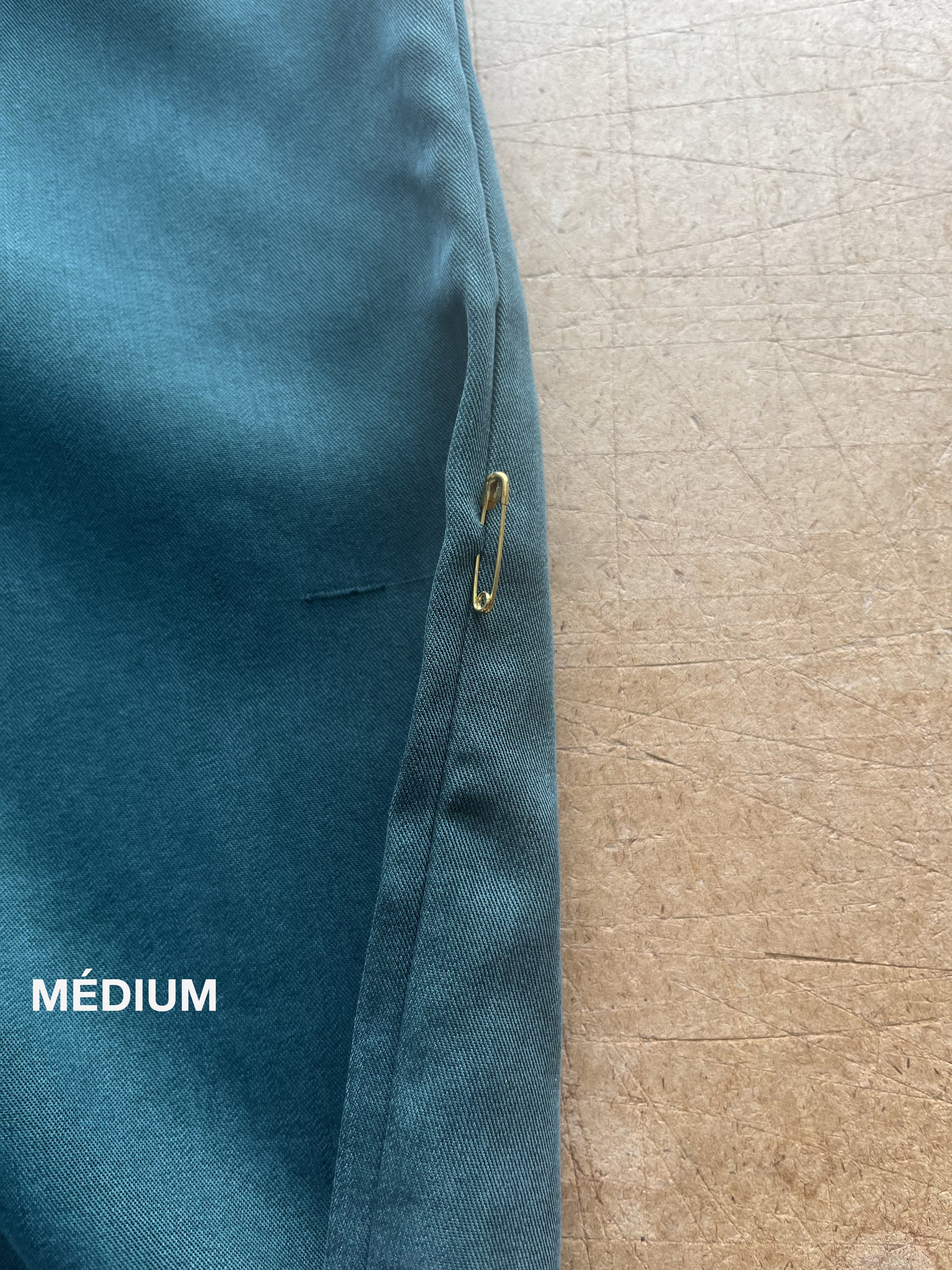 S : Défaut de couture sur le côté de la jambe, où un mauvais plis se trouve dans la couture