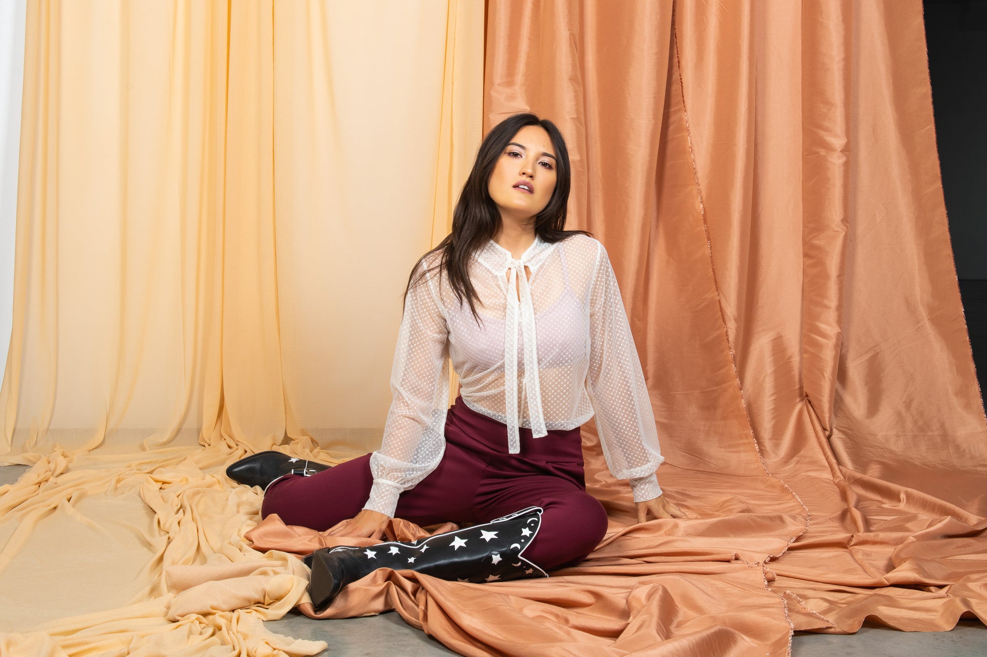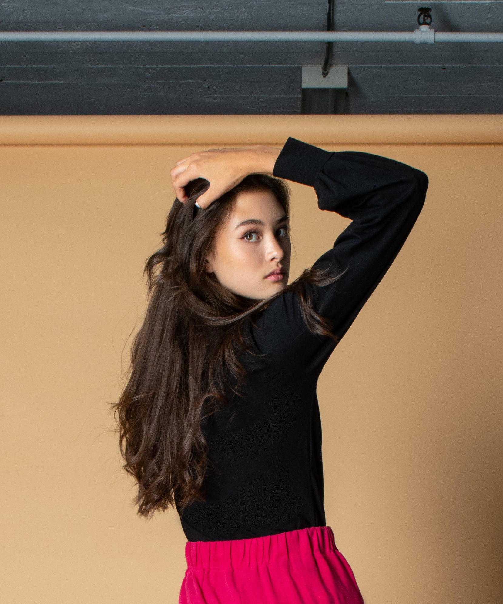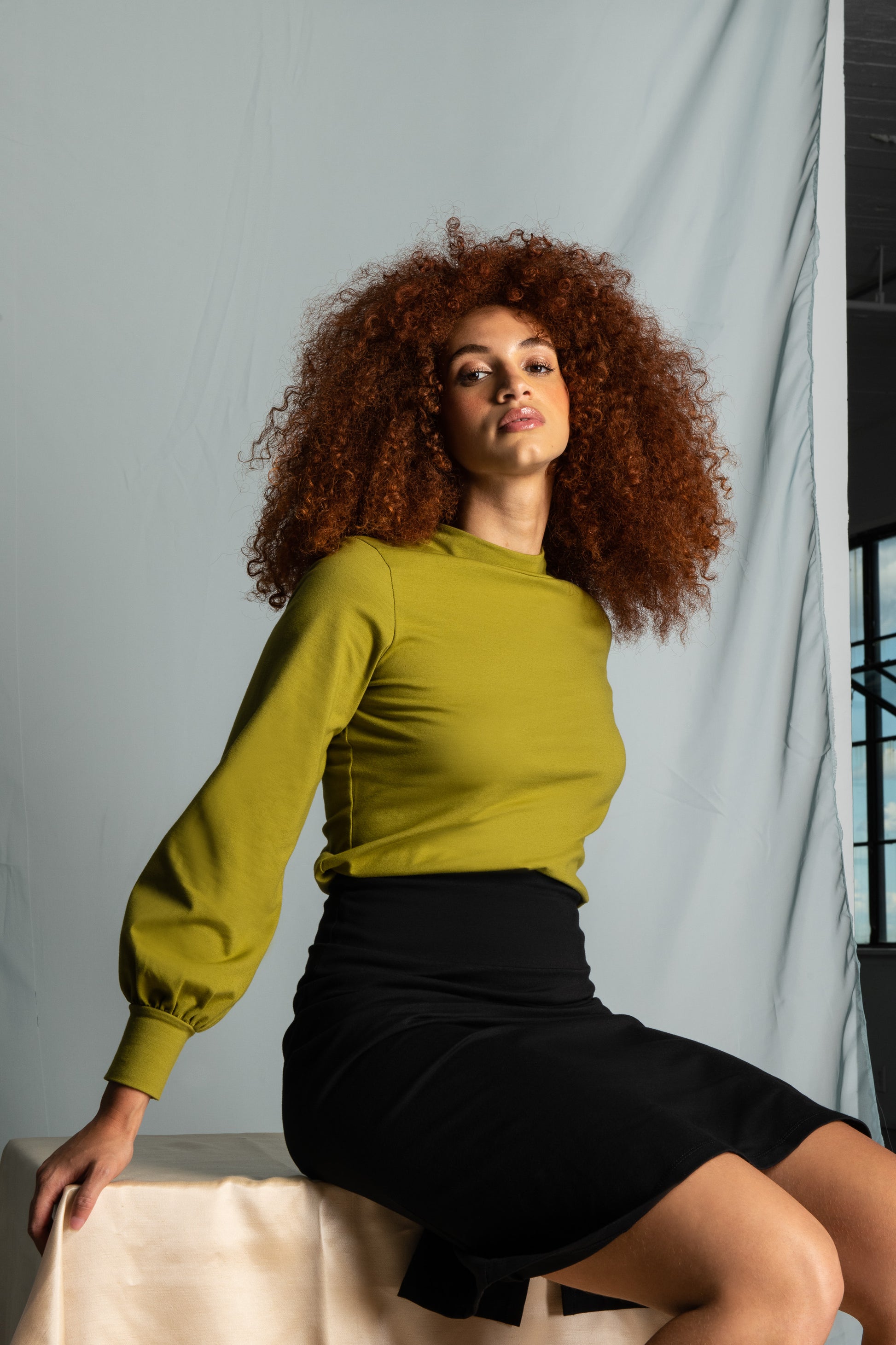 Rien de plus pratique que ce petit haut tout-aller réversible. On peut le mettre en col montant ou en col noué pour deux looks bien différents. Les manches longues sont légèrement bouffantes. Vous pouvez autant le porter à l’intérieur d’un pantalon habillé ou à l’extérieur d’un jean. Ce modèle est disponible en coton ou en dentelle.