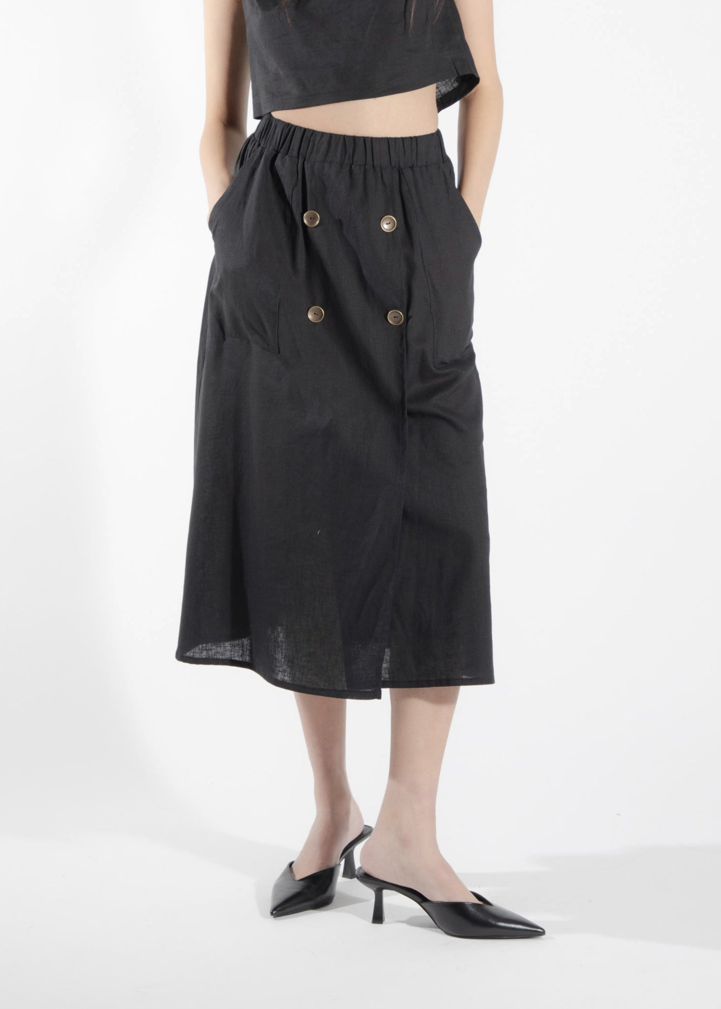 Cette jupe mi-mollet ne dépendra que de vous pour passer d’un look désinvolte à une allure sophistiquées. Ornée de poches appliquées et de 4 boutons de métal antique au-devant. Taille élastique pour un meilleur ajustement.