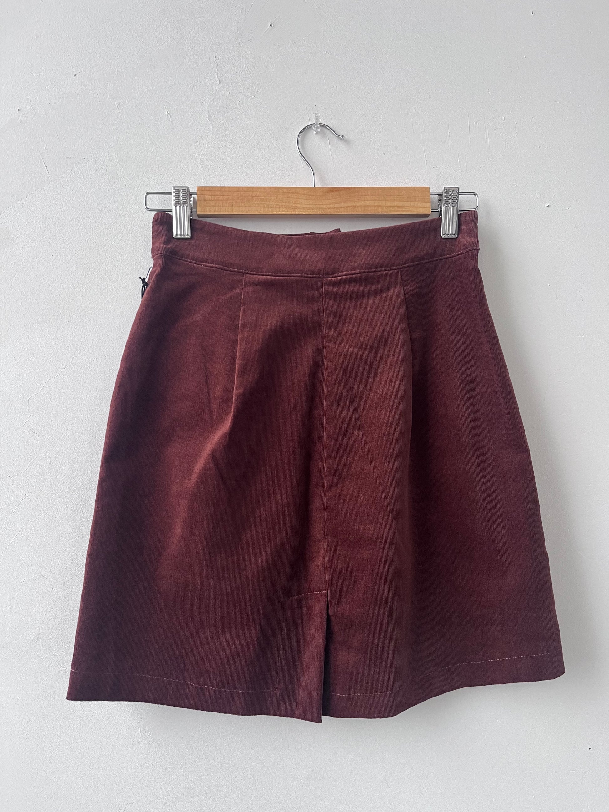 Jupe courte à coupe semi-ajustée, parfaite pour l’automne. Fermeture à glissière YKK à l'avant avec bouton surdimensionné. Longueur au-dessus du genou, poches latérales en biais et fente à l'arrière pour plus d'aisance. Détail de rabat décoratif avec boutonnière. Disponible en corduroy noir, olive ou noisette.