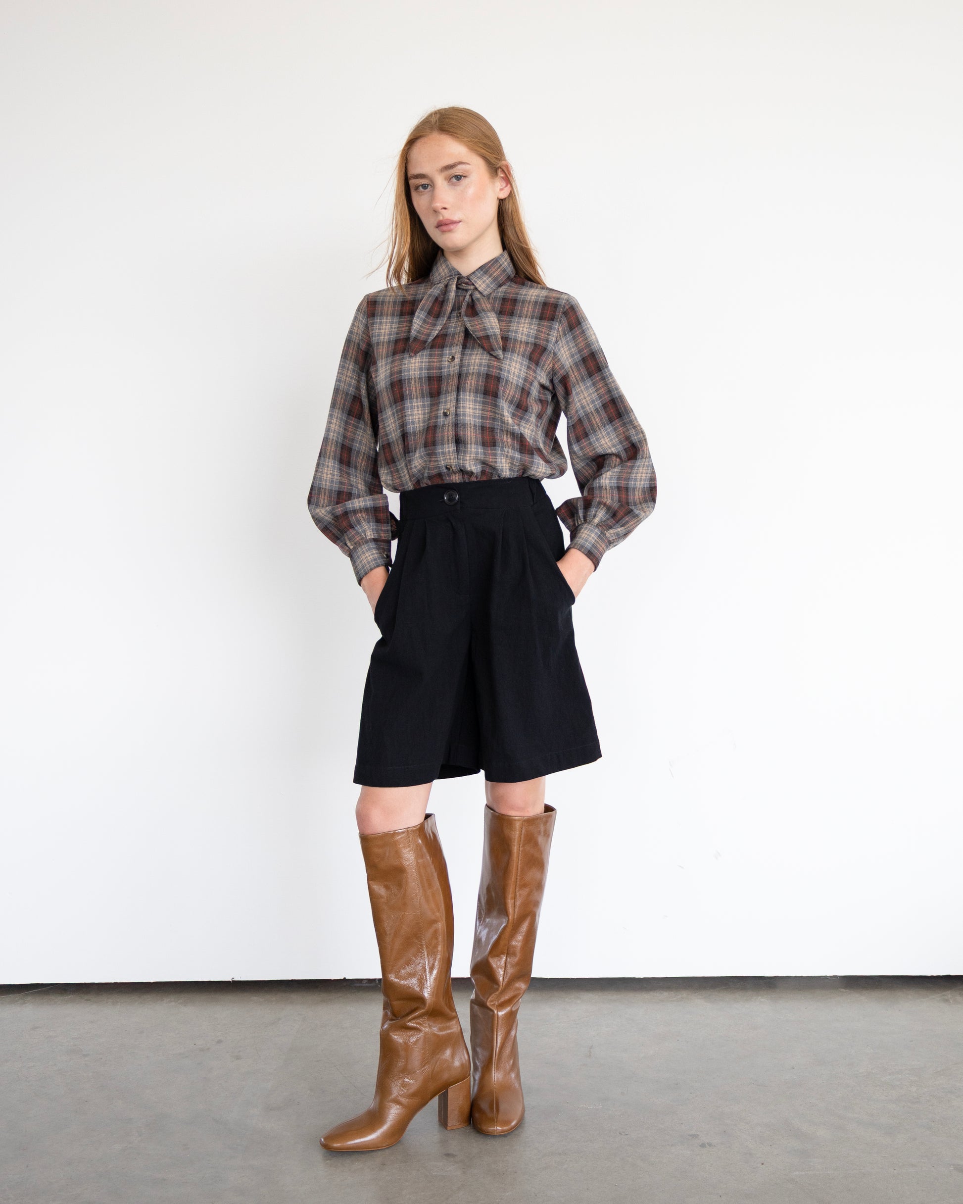 Une pièce tendance qui s'agence parfaitement avec le chemisier assorti ou le haut à manches bouffantes. Sa longueur au genou et son entrejambe de 9,5 pouces offrent un équilibre idéal entre confort et structure. Il présente de jolis doubles plis à l'avant, une taille élastique au dos, une braguette zippée et un bouton surdimensionné en finition. Disponible en carreaux, noir, olive ou violet.