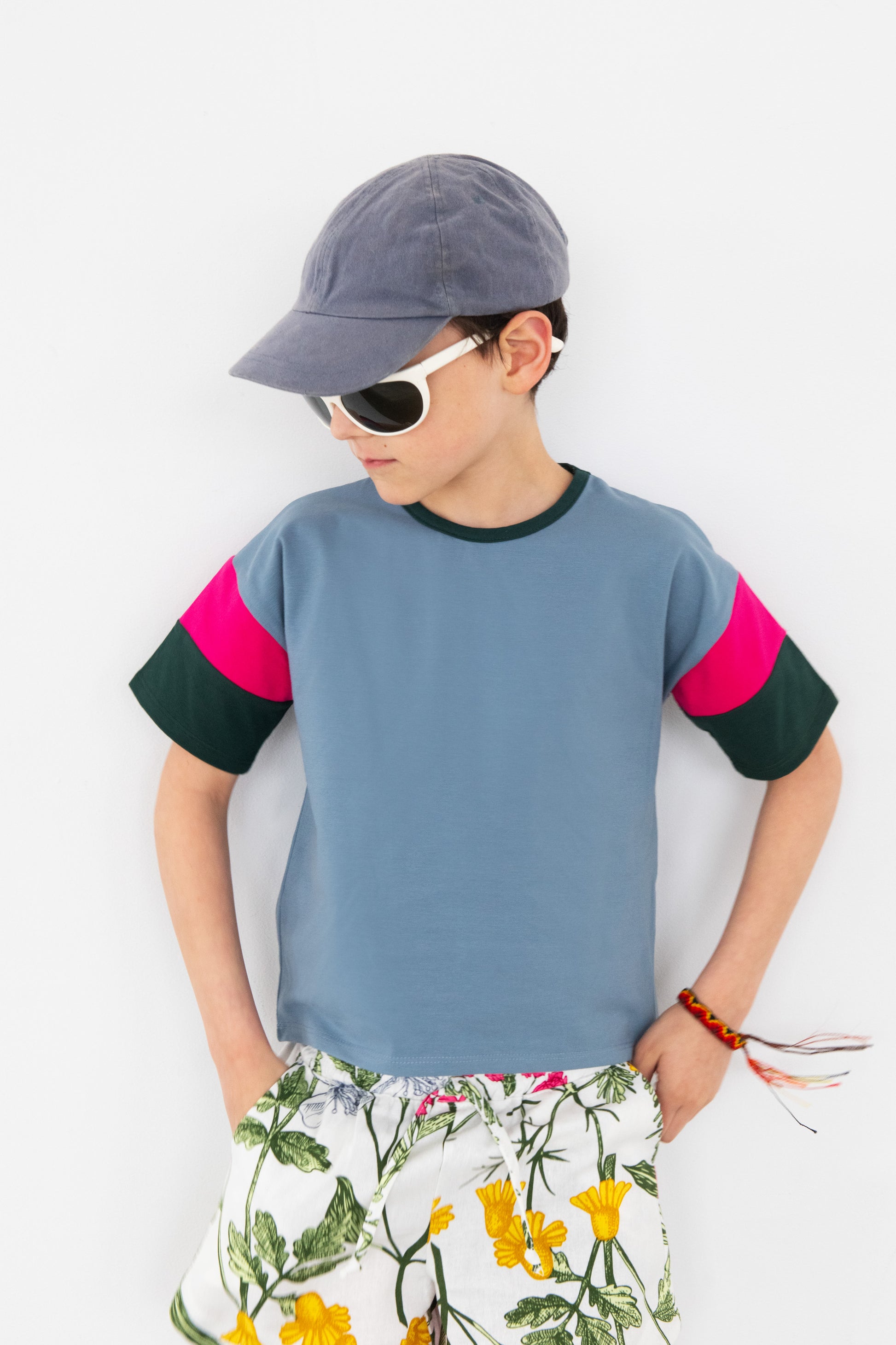 T-Shirt évolutif unisexe pour enfants avec découpe de couleur aux manches SOLDES
